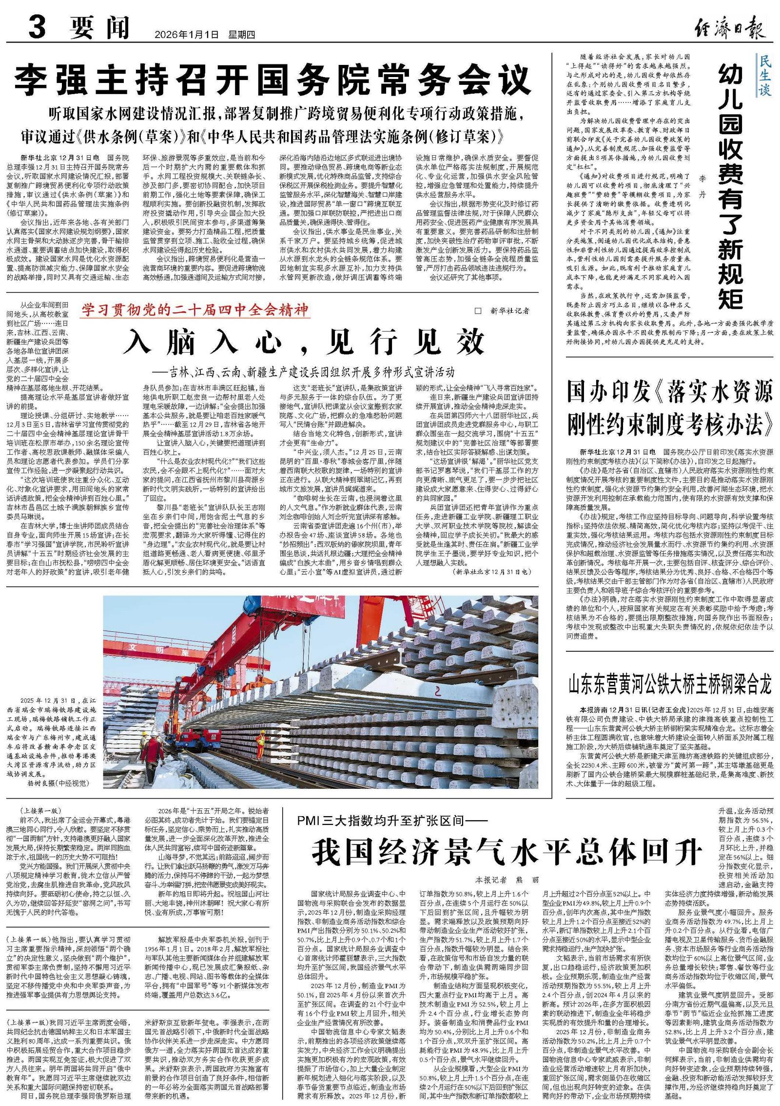 本报济南12月31日讯(记者王金虎)2025年12月31日,由雄安高铁有限公司负责建设、中铁大桥局承建的津潍高铁重点控制性工程——山东东营黄河公铁大桥主桥钢桁梁实现精准合龙。这标志着全桥主体工程圆满收官,也意味着大桥建设全面转入桥面系及附属工程施工阶段,为大桥后续铺轨通车奠定了坚实基础。