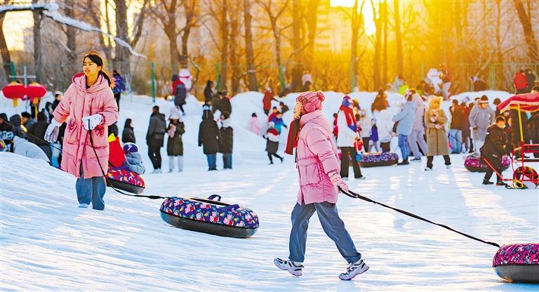 1月1日,游客在北京玉渊潭公园感受冰雪乐趣。元旦假期首日,北京各大公园景区迎来众多游客。本报记者 赵 晶摄