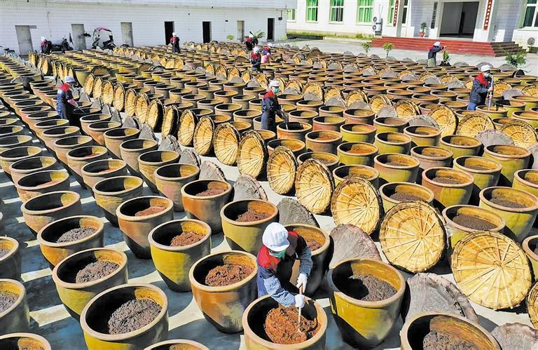 2025年12月26日,重庆市石柱县龙沙镇一家调味品生产企业内,工人在辣椒豆瓣酱晒缸区忙碌。近年来,石柱县依托资源优势加快培育现代山地特色高效农业,大力发展辣椒种植和辣椒精深加工产业,推动农业增效、农民增收。陈清素摄(中经视觉)