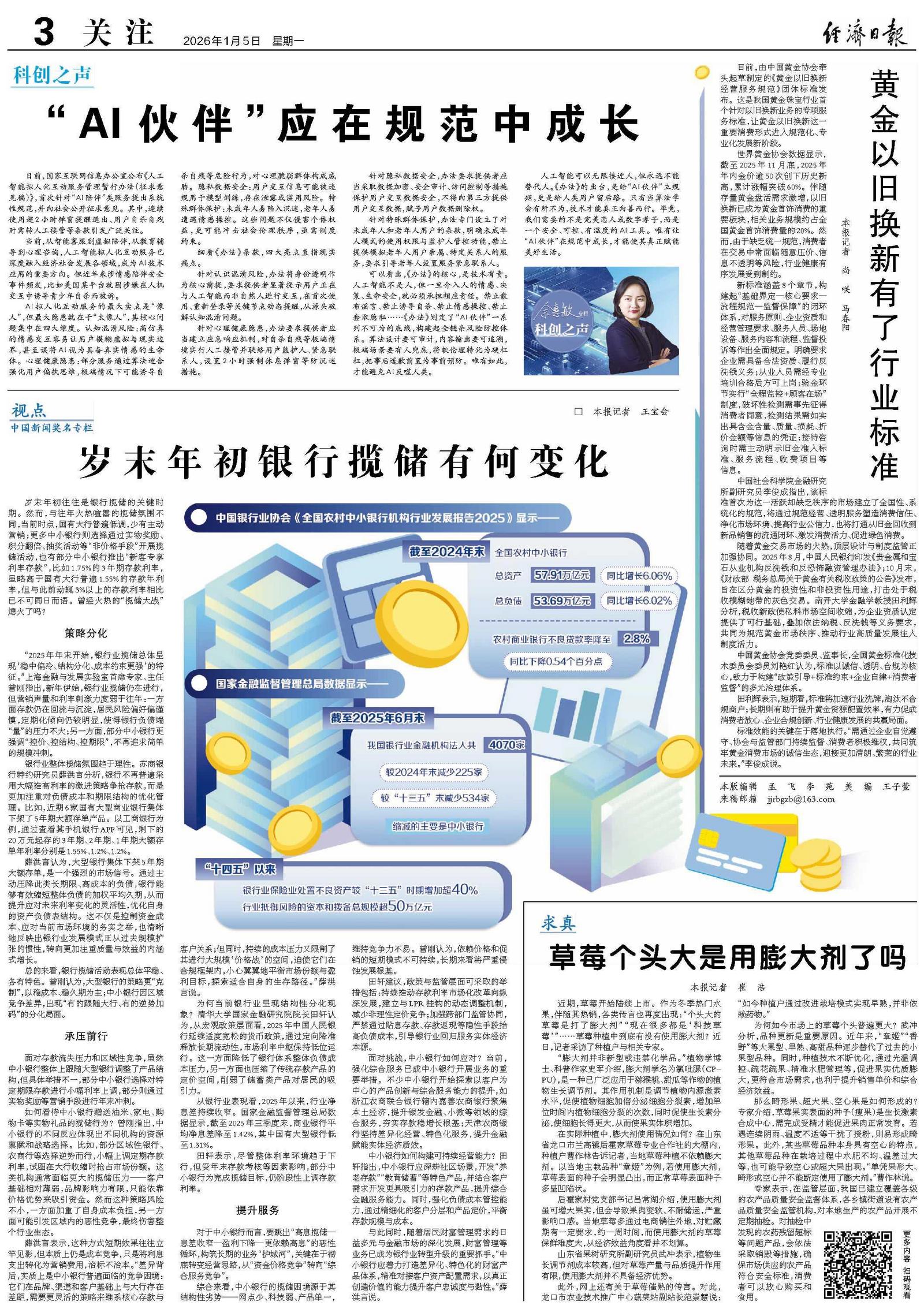 中国社会科学院金融研究所副研究员李俊成指出,该标准首次为这一活跃却缺乏秩序的市场建立了全国性、系统化的规范,将通过规范经营、透明服务塑造消费信任、净化市场环境、提高行业公信力,也将打通从旧金回收到新品销售的流通闭环、激发消费活力、促进绿色消费。