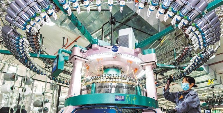 1月5日,浙江省湖州市长兴县湖州晨宇家居用品有限公司,工人操作全自动针织大圆机生产订单产品。 谭云俸摄(中经视觉)