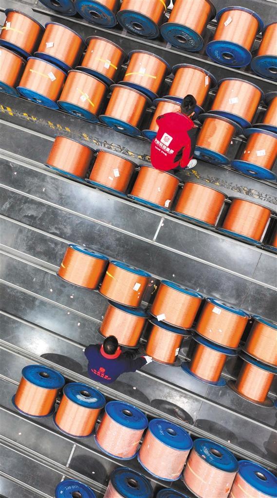 1月4日,工人在贵州省贵阳市中安科技集团电缆生产车间内点验铜丝。 袁福洪摄(中经视觉)