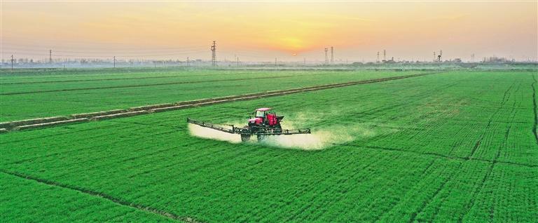 1月7日,安徽省安庆市宿松县省属农垦华阳河农场,农机手驾驶植保机械开展小麦喷肥施药作业。当前,长江中下游地区进入冬小麦田管的关键期,农场有序推进施肥、除草等田管工作,确保小麦安全越冬,助力夏粮增产丰收。李 龙摄(中经视觉)