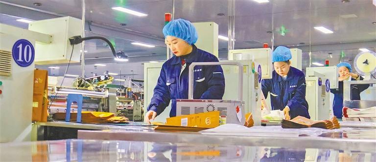 近年来,河南省南阳市抓住产业结构调整新机遇,积极延链补链强链,加快新旧动能接续转换,印刷包装产业进入发展快车道。图为南阳金誉科技有限公司智能印刷包装新材料产业基地,生产线开足马力,工人们忙生产、抢进度、赶订单。