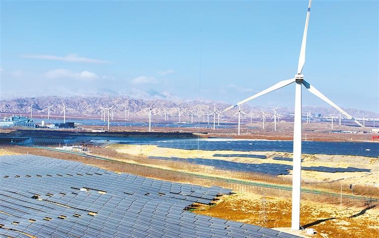 近年来,宁夏回族自治区石嘴山市充分盘活戈壁、荒坡、高速道路周边零星地块等场地,建设光伏、风力发电项目,推动绿色低碳发展。图为石嘴山市惠农区的一处清洁能源发电站。袁宏彦摄(中经视觉)