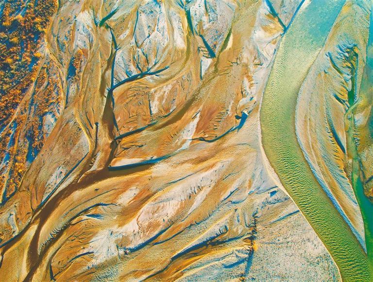 2025年12月22日,新疆维吾尔自治区阿克苏地区乌什县托什干河亚曼苏乡河段进入枯水期,沙洲与蜿蜒水流交织成独特地貌,蔚为壮观。