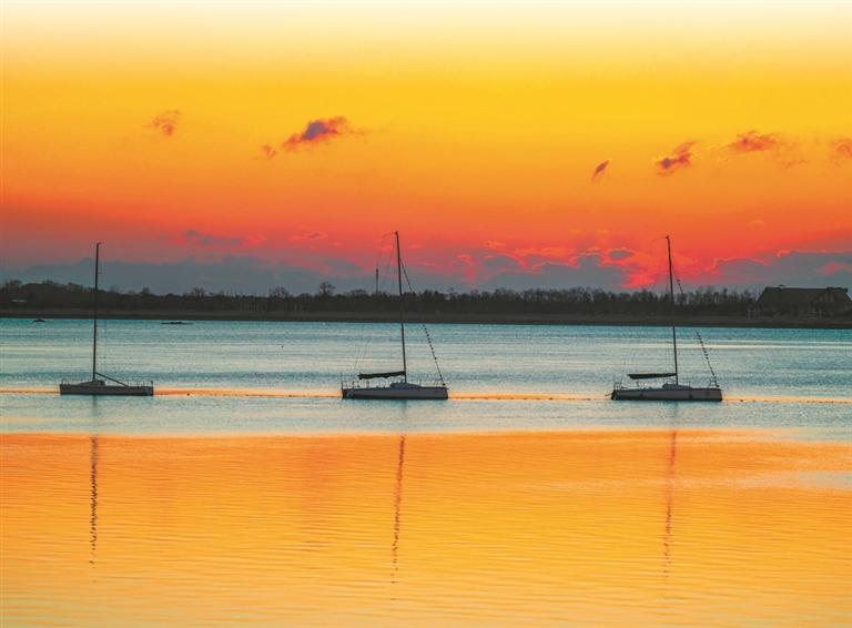 1月2日,山东省青岛市西海岸新区唐岛湾波光粼粼,朝阳从黄海上冉冉升起,景美如画。