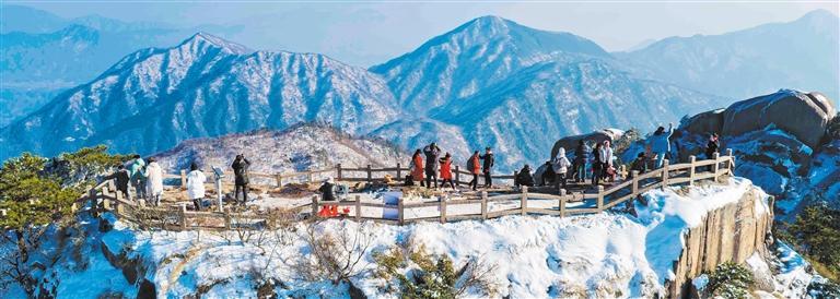 1月3日,安徽省池州市九华山花台景区,游客沿观景栈道漫步,领略冬日山岳的雄奇与灵秀。