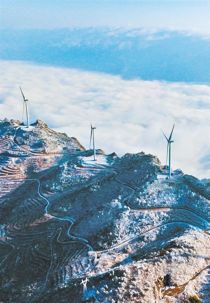 1月6日,雾凇环抱的重庆市黔江区五福岭风电场风力发电叶轮在旋转发电。近年来,当地积极发展生态清洁能源,为经济社会发展注入动能。杨 敏摄(中经视觉)