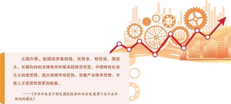 超大规模市场是我国经济发展的显著优势和参与国际竞争的重要战略资源,不仅是经济运行的稳定器,更是塑造新动能新优势的动力源。“十五五”时期在基本实现社会主义现代化进程中具有承前启后的重要地位。党的二十届四中全会指出,我国经济基础稳、优势多、韧性强、潜能大,长期向好的支撑条件和基本趋势没有变,中国特色社会主义制度优势、超大规模市场优势、完整产业体系优势、丰富人才资源优势更加彰显。