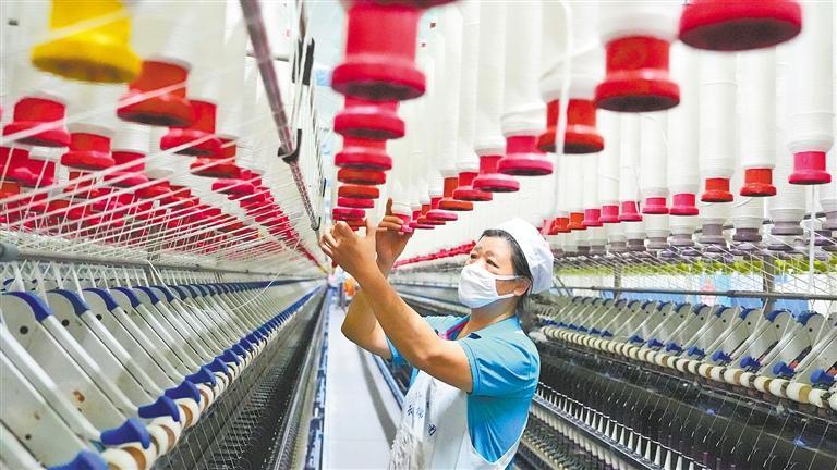 湖南省衡阳市白沙洲工业园,衡阳天锦纺织有限公司员工在生产线上作业。各企业铆足干劲,加紧生产,奋力冲刺“全年红”。曹正平摄(新华社发)