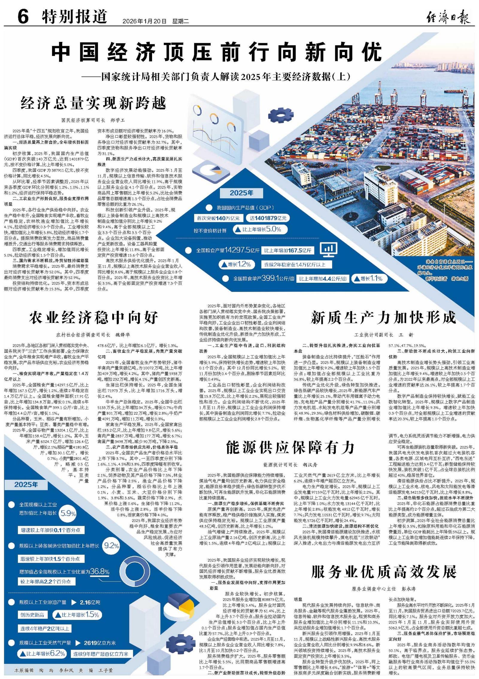 服务业转型升级步伐加快。2025年,网上零售额比上年增长8.6%。“旅游+”“体育+”等文体旅商多元深度融合创新实践,服务消费新增长点加快培育。