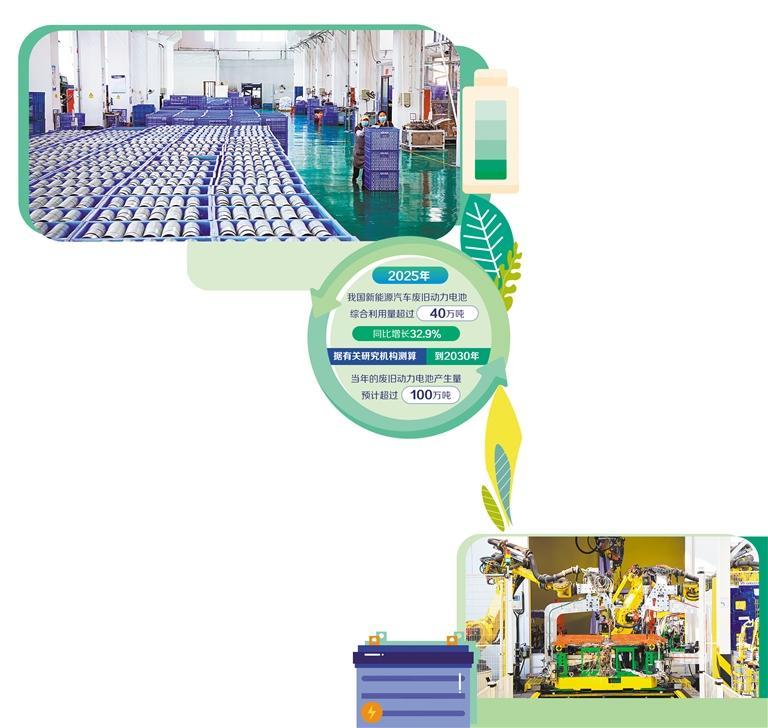 经过多年探索实践,我国废旧动力电池回收利用体系建设已取得积极成效。数据显示,2025年,我国新能源汽车废旧动力电池综合利用量超过40万吨,同比增长32.9%,骨干企业锂、钴、镍等金属回收率处于国际先进水平。