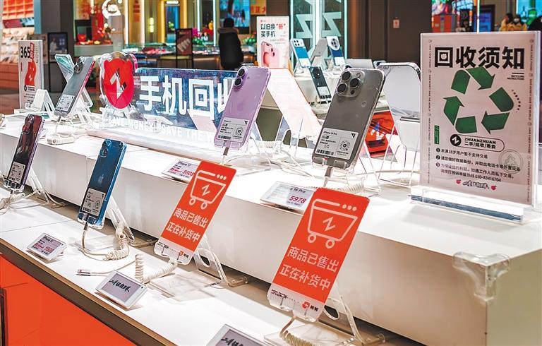 1月20日,安徽省合肥市经开区一商场内,手机回收区域的商品不少已售出。