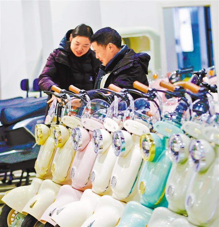 1月10日,四川省乐山市,消费者在选购电动自行车。