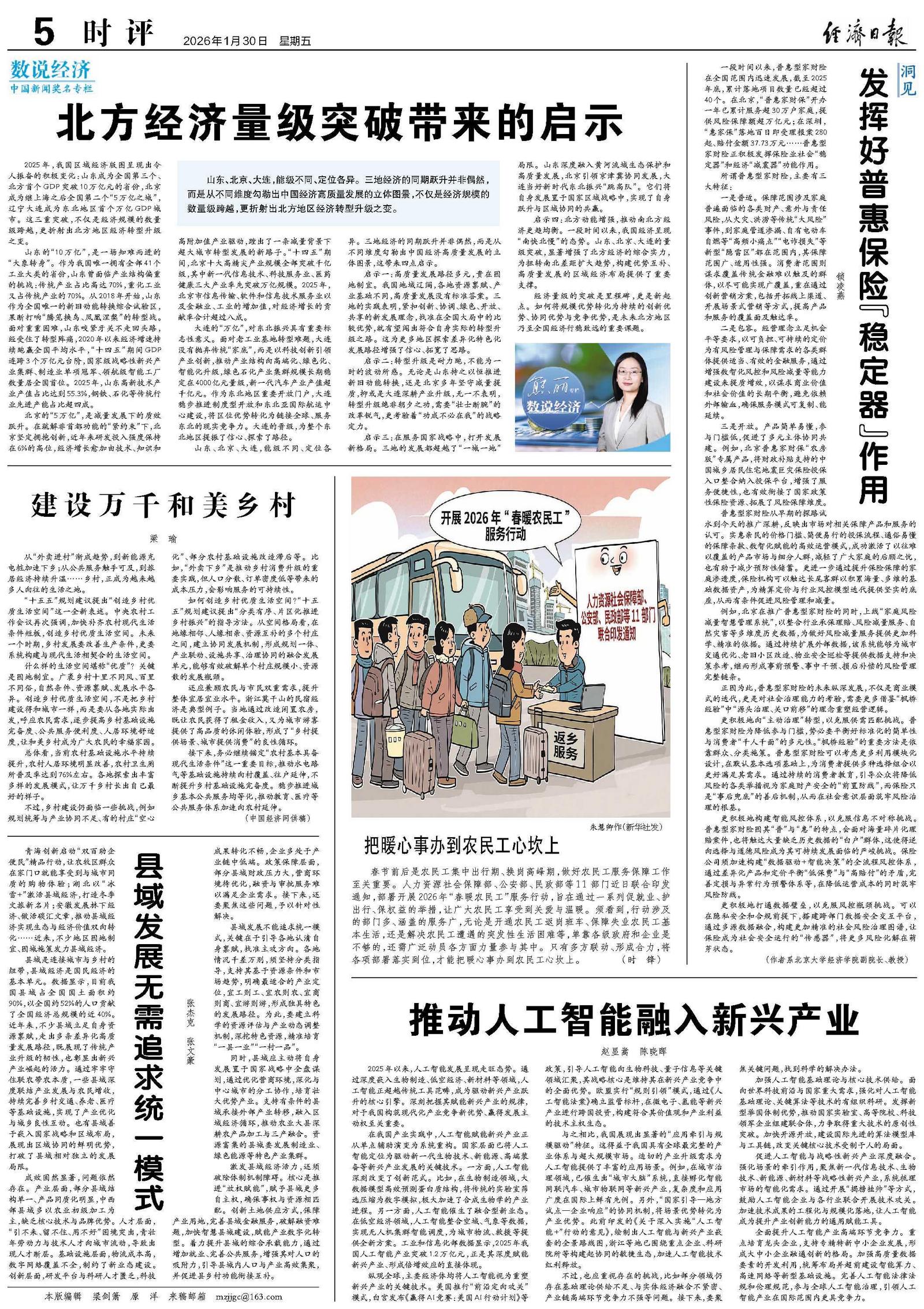 在我国产业实践中,人工智能赋能新兴产业正从单点辅助演变为系统重构。国家层面已将人工智能定位为驱动新一代生物技术、新能源、高端装备等新兴产业发展的关键技术。一方面,人工智能深刻改变了创新范式。比如,在生物制造领域,大数据模型高效预测蛋白质结构,将传统的实验室筛选压缩为数字模拟,极大加速了合成生物学的产业进程。另一方面,人工智能催生了融合型新业态。在低空经济领域,人工智能整合空域、气象等数据,实现无人机集群智能调度,为城市物流、救援等提供全新方案。工业和信息化部数据显示,2025年我国人工智能产业突破1.2万亿元,正是其深度赋能新兴产业、形成倍增效应的直接体现。