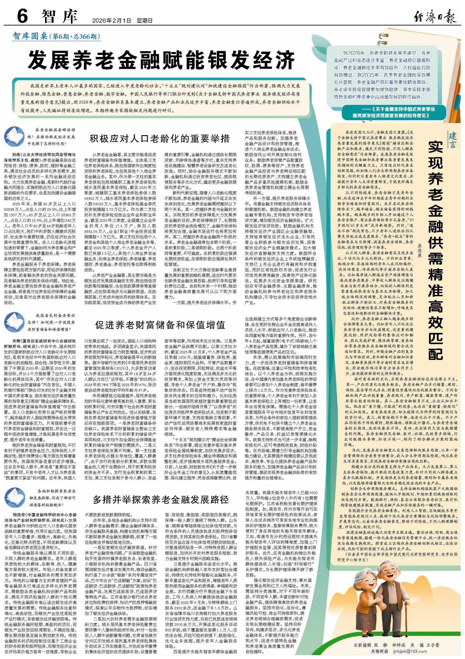 养老是国之大计,金融是国之重器。《关于金融支持中国式养老事业 服务银发经济高质量发展的指导意见》围绕“精准匹配金融产品和服务,满足不同阶段、不同人群养老金融需求”作出部署。发展养老金融是促进中国特色金融和养老事业高质量发展良性循环的关键着力点。只有适应时代要求创新思路,向加强人们全生命周期养老准备转变,向同时注重老年人物质文化需求、全面提升老年人生活质量转变,才能更好满足多样化的养老金融需求。