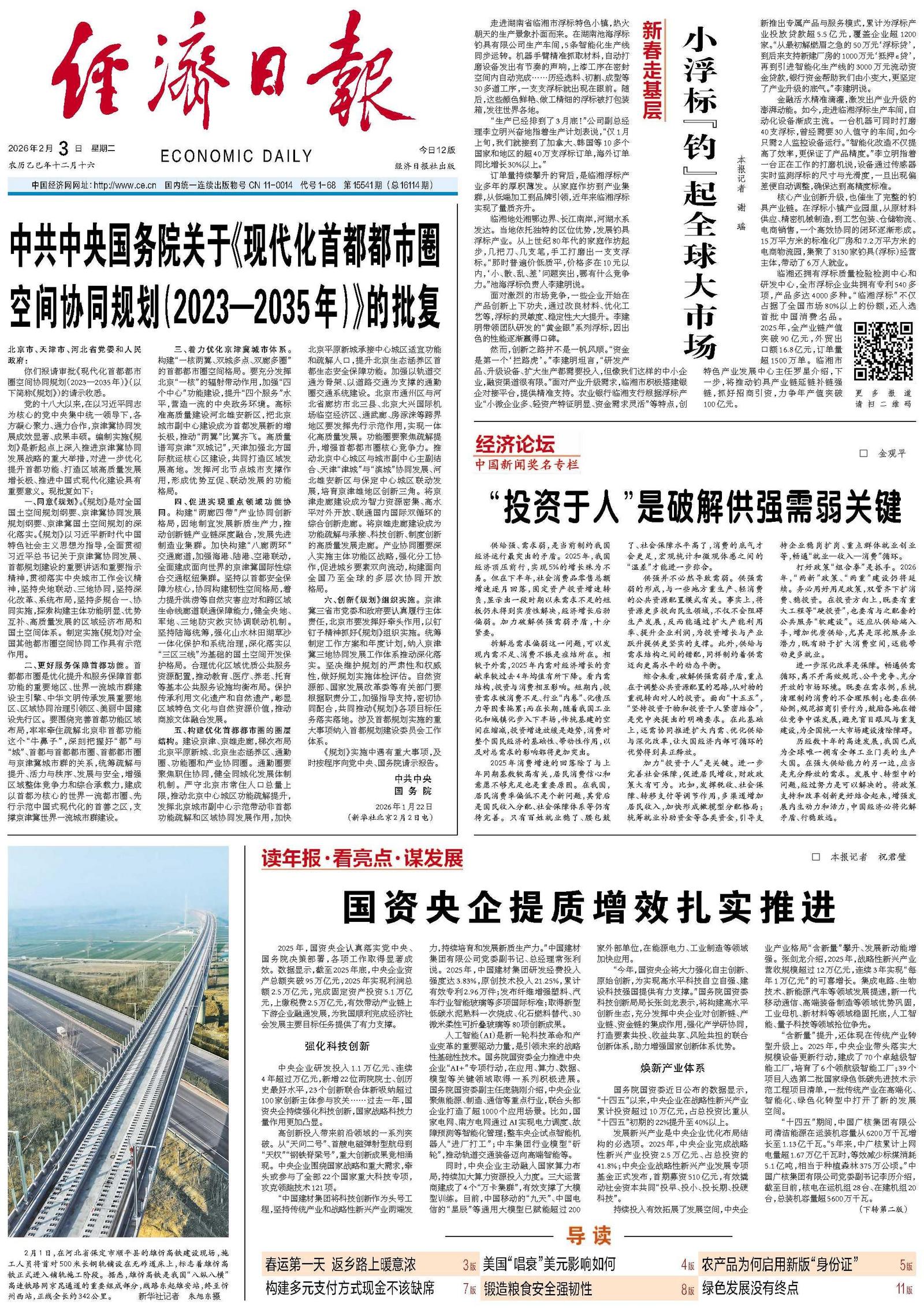 打好政策“组合拳”是抓手。2026年,“两新”政策、“两重”建设仍将延续。务必用好用足政策,双管齐下扩消费、稳投资。在投资方向上,既要有重大工程等“硬投资”,也要有与之配套的公共服务“软建设”。还应从供给端入手,增加优质供给,尤其是深挖服务业潜力,既有助于扩大消费空间,还能带动更多就业。