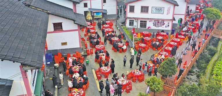 2月1日,江西省吉安市井冈山茅坪镇神山村在村中摆年味神山宴席,以“神山宴”待客四方,让游客在品尝地道风味的同时,感悟革命岁月、传承文化根脉,以文化赋能大幅提升农产品附加值。