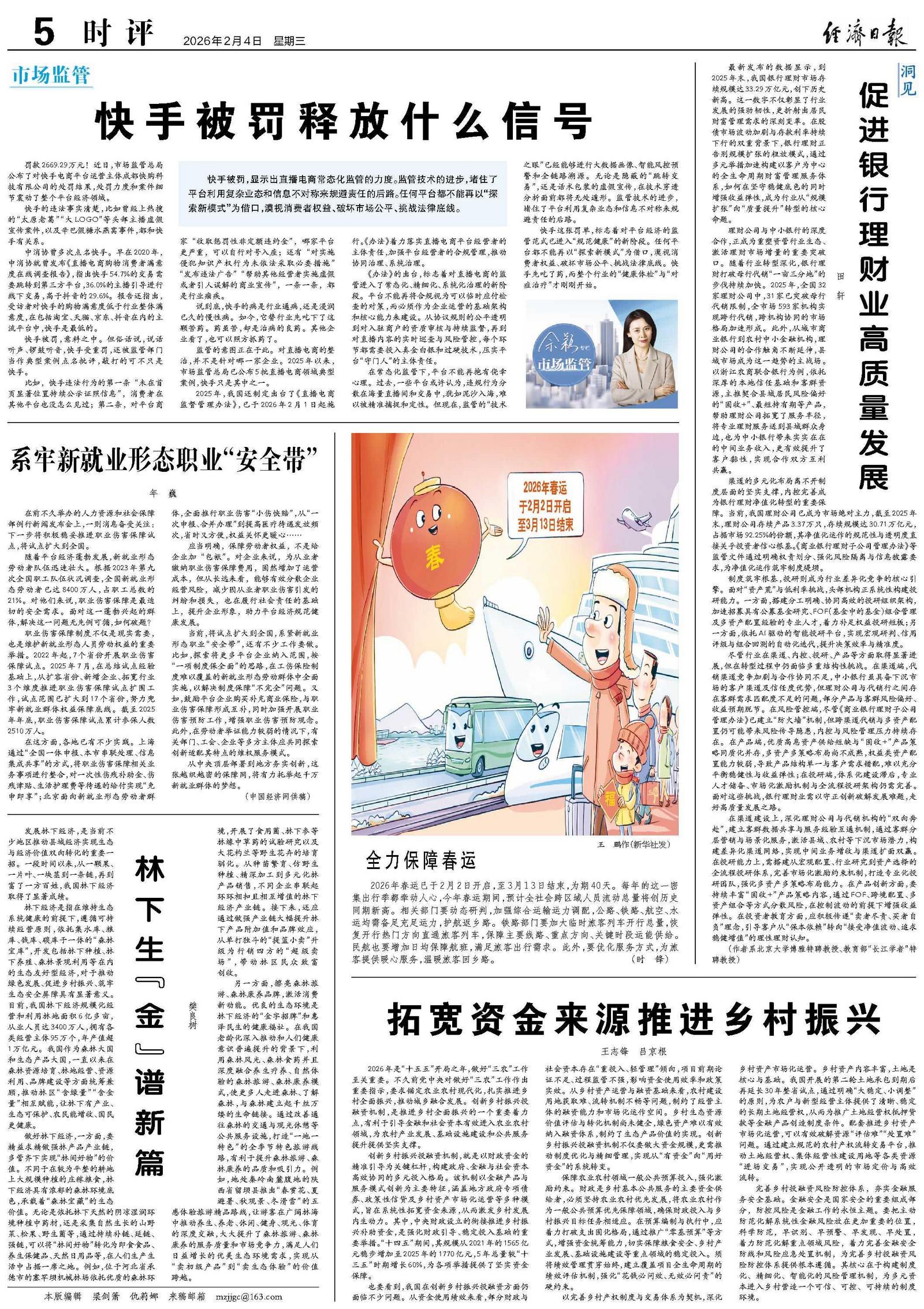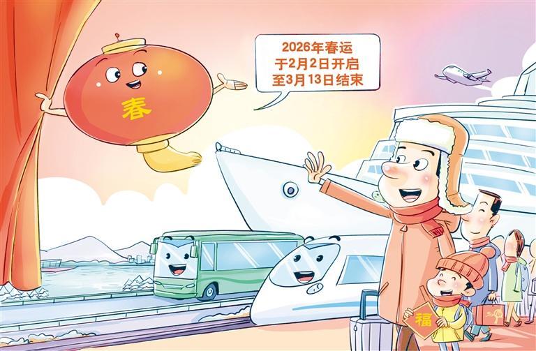 2026年春运已于2月2日开启,至3月13日结束,为期40天。每年的这一密集出行季都牵动人心,今年春运期间,预计全社会跨区域人员流动总量将创历史同期新高。相关部门要动态研判,加强综合运输运力调配,公路、铁路、航空、水运均需备足充足运力,护航返乡路。铁路部门要加大临时旅客列车开行总量,恢复开行热门方向直通旅客列车,保障主要线路、重点方向、关键时段运能供给。民航也要增加日均保障航班,满足旅客出行需求。此外,要优化服务方式,为旅客提供暖心服务,温暖旅客回乡路。(时 锋)