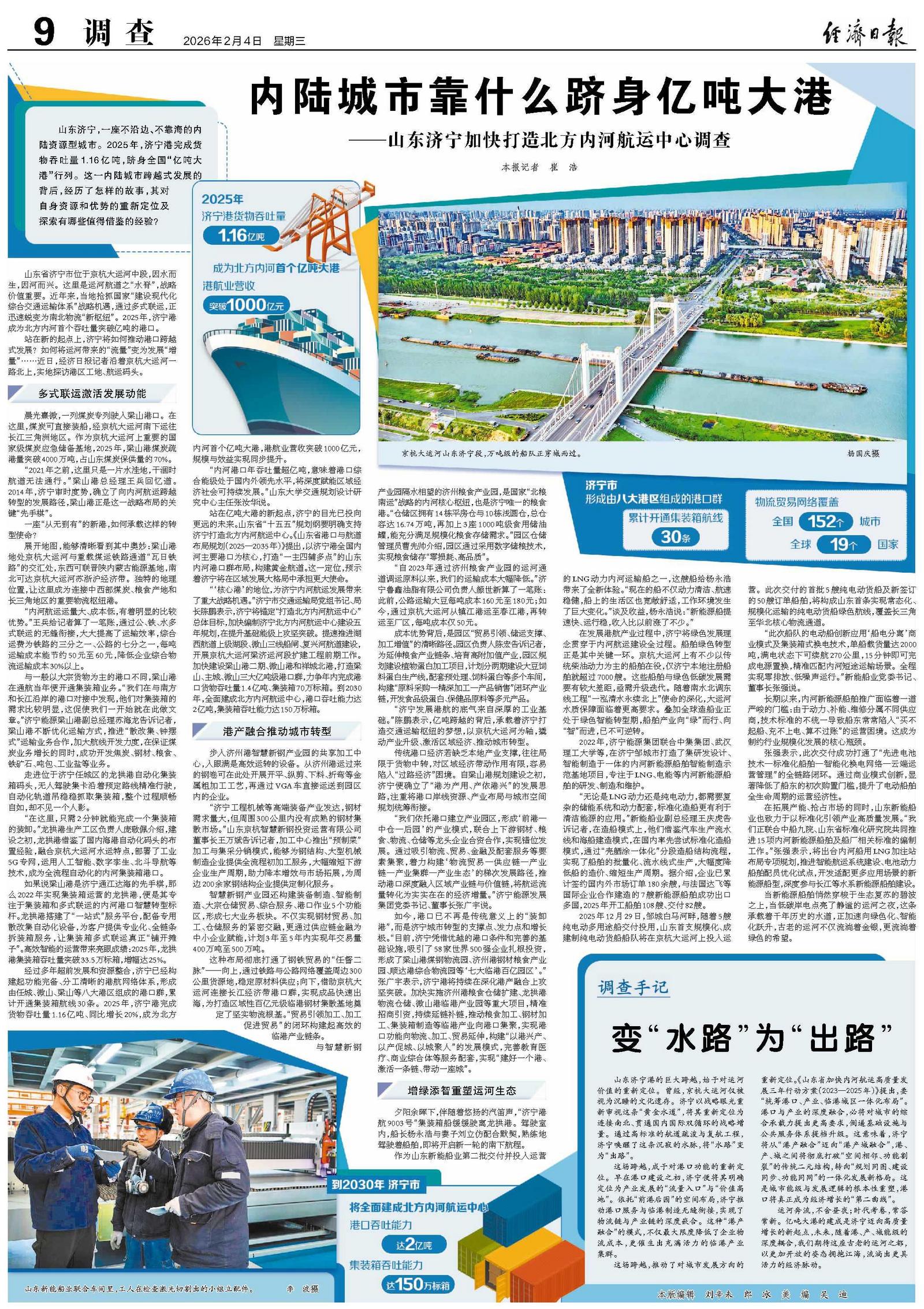 运河奔流,不舍昼夜;时代考卷,常答常新。亿吨大港的建成是济宁迈向高质量增长的新起点,未来,随着港、产、城能级的深度耦合,我们期待这座古老的运河之都,以更加开放的姿态拥抱江海,流淌出更具活力的经济脉动。