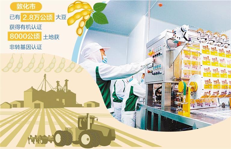在推进高端产品开发的同时,敦化也注重传统大豆食品的创新传承。在敦化,以本地优质大豆为主要原料制作而成的煎饼、酱菜等产品通过“工业+旅游”“线上+线下”融合等模式,成为热销伴手礼和电商产品。敦化大豆产业链正不断延伸,朝着更高附加值的方向加速迈进。黑土地上,小豆子正源源不断变成富民增收的“金豆子”。