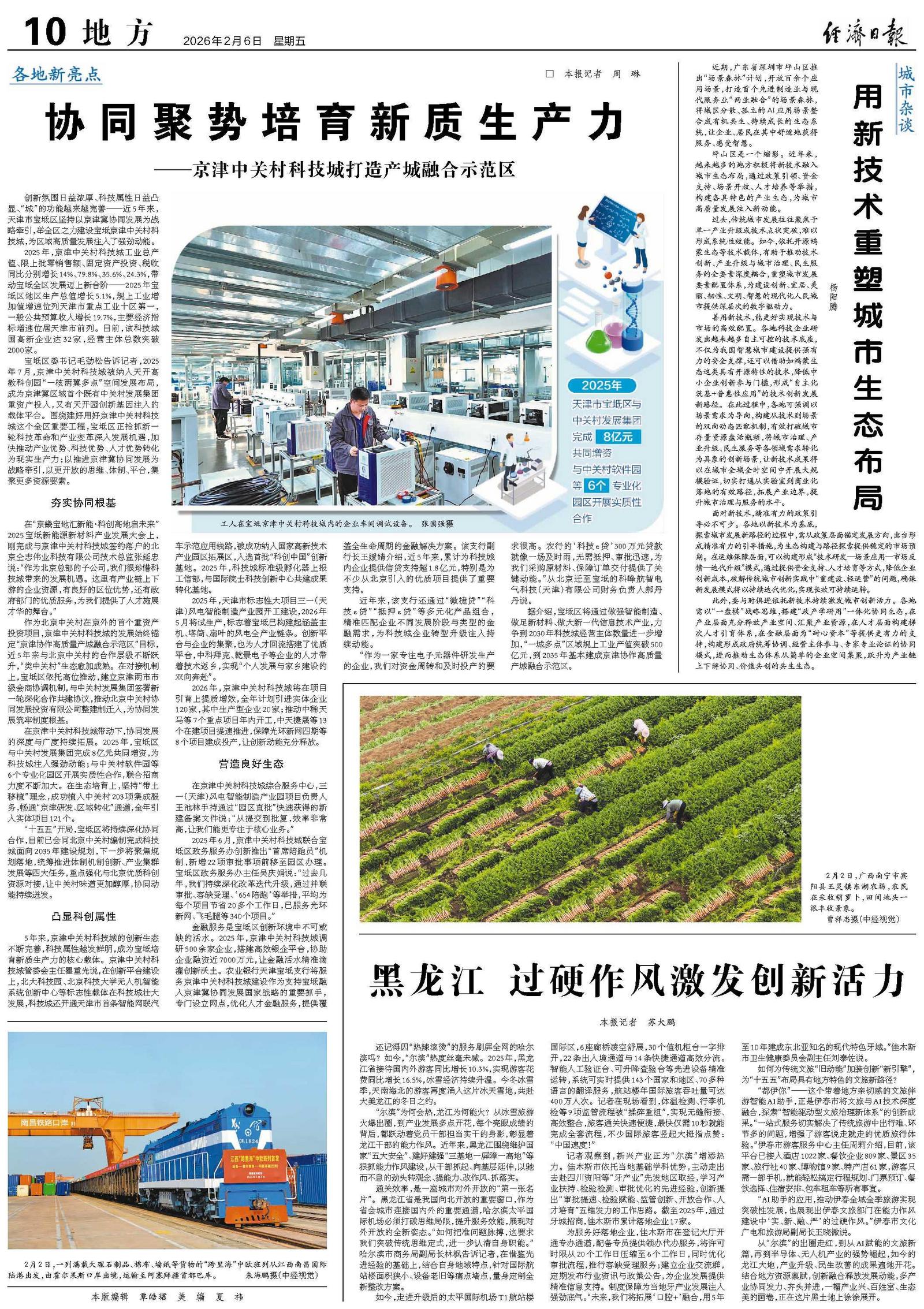从“尔滨”的出圈走红,到从AI赋能的文旅新篇,再到半导体、无人机产业的强势崛起,如今的龙江大地,产业升级、民生改善的成果遍地开花。结合地方资源禀赋,创新融合释放发展动能,多产业协同发力、齐头并进,一幅产业兴、百姓富、生态美的画卷,正在这片黑土地上徐徐展开。