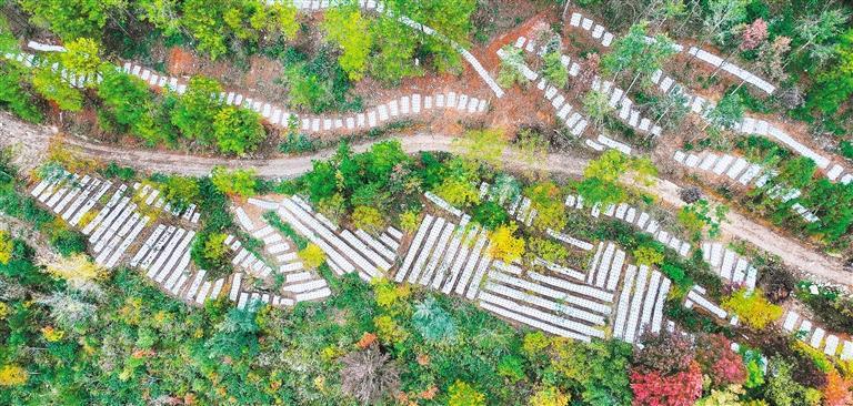 2025年11月10日,重庆市酉阳土家族苗族自治县板溪镇杉树湾村林下种植的黄精已完成覆膜。石嘉黎摄(中经视觉)