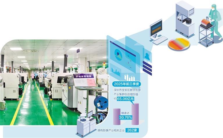 目前,宝安已拥有影像产业相关企业262家,其中硬件生产企业超过95%。影石创新科技股份有限公司、神牛摄影器材有限公司、洲明科技股份有限公司……一批高市场占比、具有全球影响力的影像企业在宝安不断涌现,形成以影石创新为全球品牌标杆,腾讯系内容生态为链主牵引,洲明、神牛等多领域企业协同支撑的发展格局。据初步统计,2025年前三季度,宝安区数字创意产业集群创造增加值约65.06亿元,增速达30.76%。