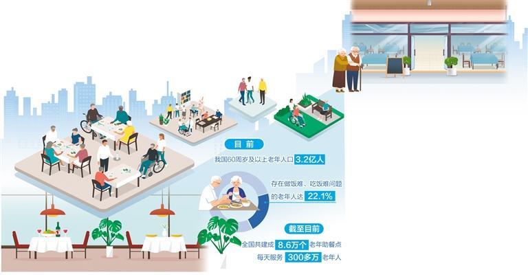 2022年10月,住建部、民政部联合发布《关于开展完整社区建设试点工作的通知》。此后,社区食堂如雨后春笋般涌现。截至目前,全国共建成8.6万个老年助餐点,每天服务300多万老年人。现如今,经过多年探索,越来越多社区食堂已从最初的“长者食堂”发展为覆盖全龄的友好餐厅,年轻人“吃饭贵”、双职工家庭“做饭难”的问题也逐步得到解决。