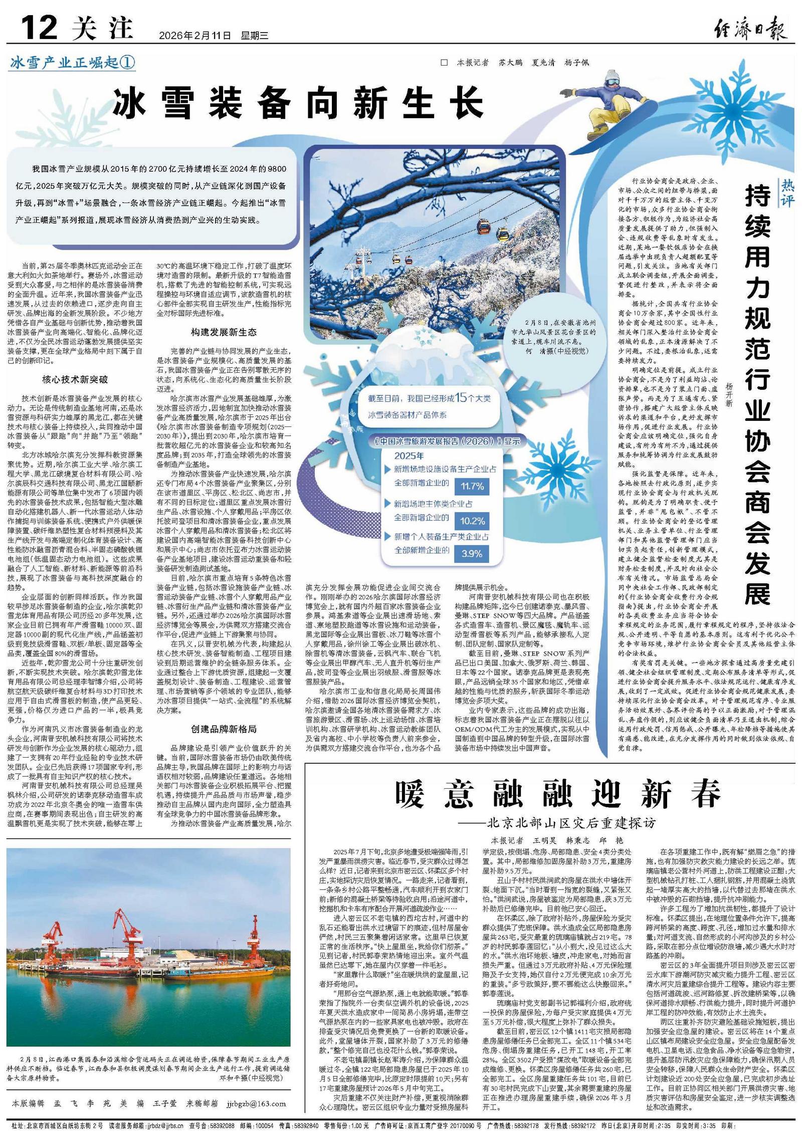 当前,第25届冬季奥林匹克运动会正在意大利如火如荼地举行。赛场外,冰雪运动受到大众喜爱,与之相伴的是冰雪装备消费的全面升温。近年来,我国冰雪装备产业迅速发展,从过去的依赖进口,逐步走向自主研发、品牌出海的全新发展阶段。不少地方凭借各自产业基础与创新优势,推动着我国冰雪装备产业向高端化、智能化、品牌化迈进,不仅为全民冰雪运动蓬勃发展提供坚实装备支撑,更在全球产业格局中刻下属于自己的创新印记。