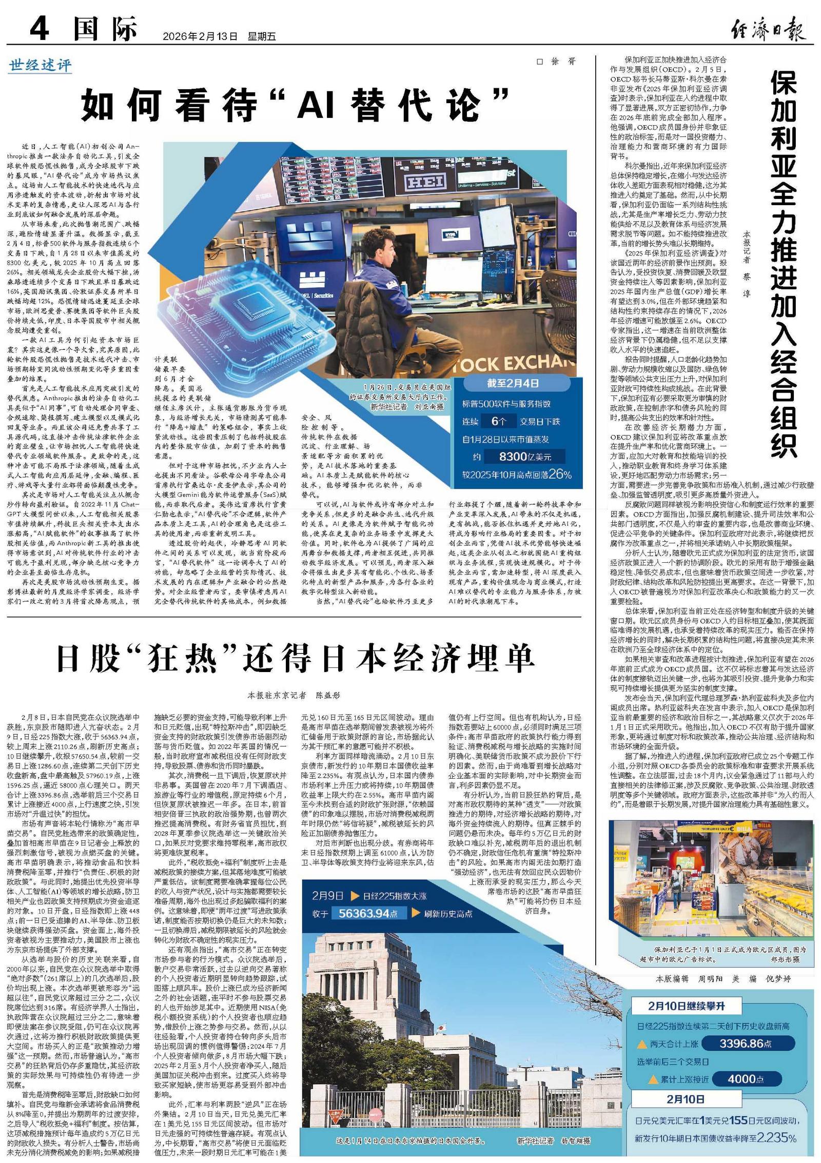 有分析认为,当前日股狂热的背后,是对高市政权期待的某种“透支”——对政策推进力的期待,对经济增长战略的期待,对海外资金持续流入的期待。但真正棘手的问题仍悬而未决。每年约5万亿日元的财政缺口难以补充,减税两年后的退出机制仍不确定,财政信任危机有重演“特拉斯冲击”的风险。如果高市内阁无法如期打造“强劲经济”,也无法有效回应民众因物价上涨而承受的现实压力,那么今天席卷市场的这股“高市早苗狂热”可能将灼伤日本经济自身。