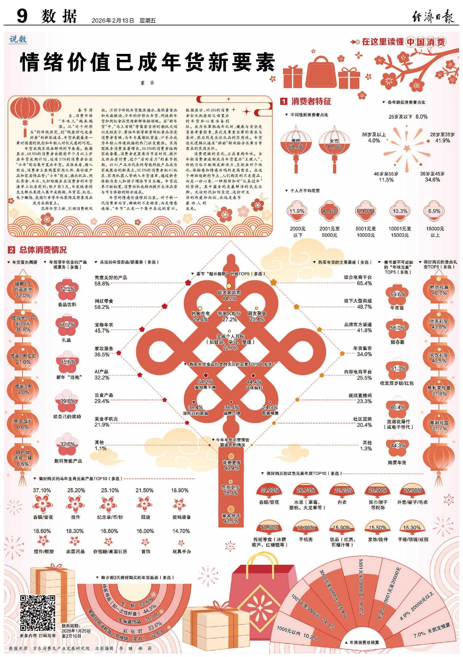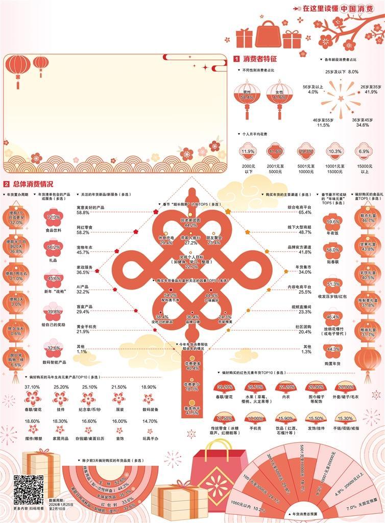 消费逻辑的变化,正在重构年味。当年轻消费者逐渐成为年货置办“主理人”,传统习俗不断焕发新活力,呈现出对个性化、体验感和情感共鸣的更高需求。在这个辞旧迎新的节点,人们购买的不是商品,而是一份心意、一种期待和对“认真过年”的坚持。其中蕴含的是最鲜活的民生注脚。无论时代如何变迁,这份对生活的热爱和向往,永远是春节最动人的底色。