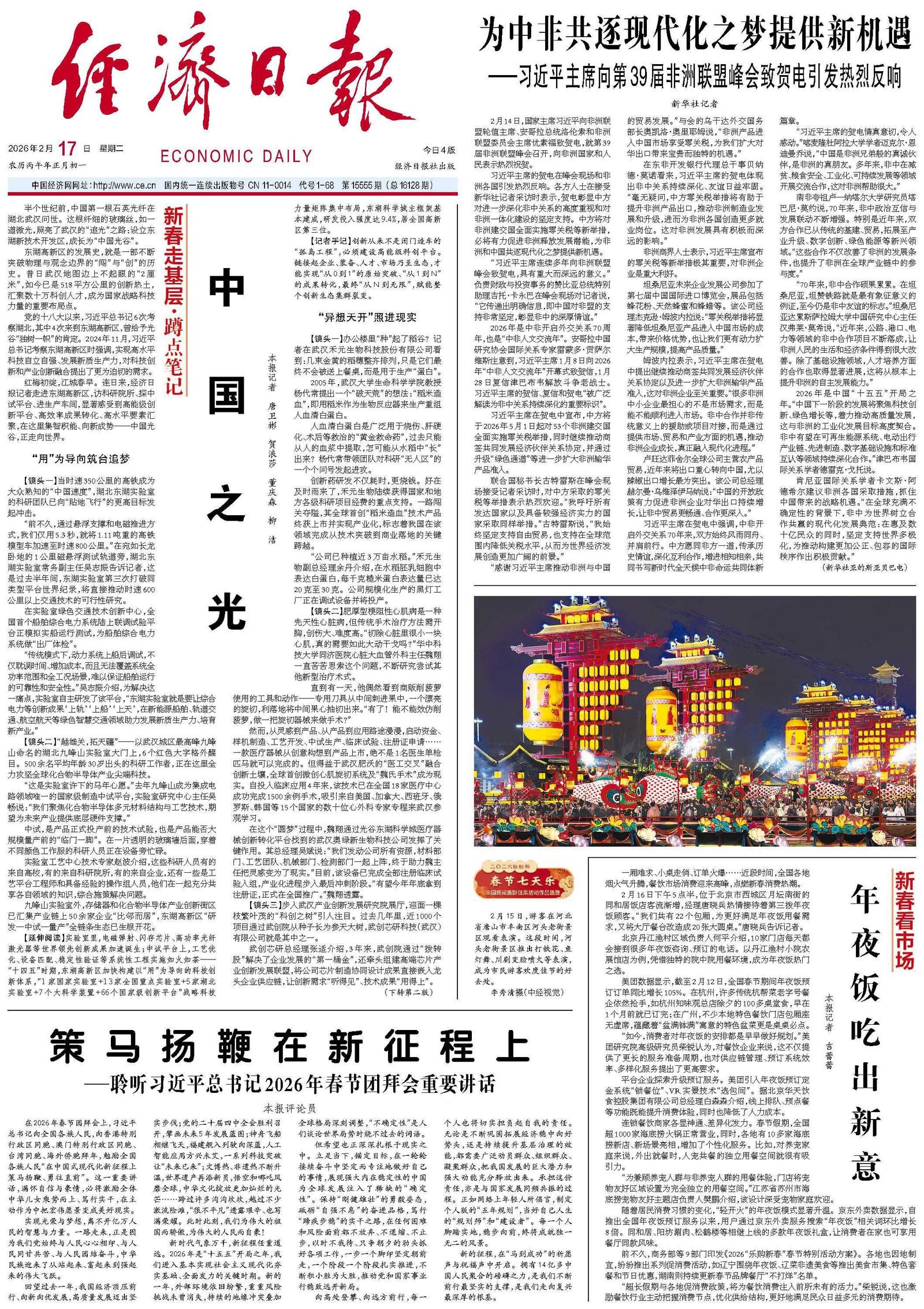 2026年是中国“十五五”开局之年。“中国下一阶段的发展将聚焦科技创新、绿色增长等,着力推动高质量发展,这与非洲的工业化发展目标高度契合。非中有望在可再生能源系统、电动出行产业链、先进制造、数字基础设施和标准互认等领域持续深化合作。”津巴布韦国际关系学者德雷克·戈托说。