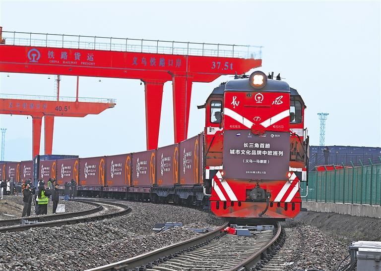 2月17日,一列满载110个标箱的中欧班列,从浙江义乌西站启程,满载着小福马等文创商品,驶向西班牙首都马德里。这是义乌“有情有义 世界义乌”城市文化品牌中欧班列首次开行。