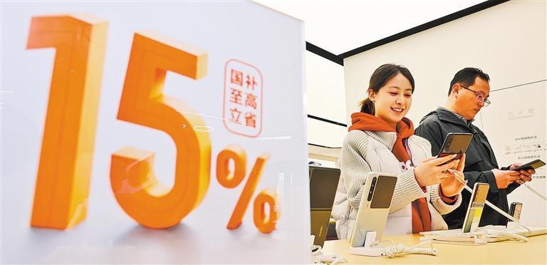 2月21日,消费者在山东省枣庄市一家专卖店选购手机。