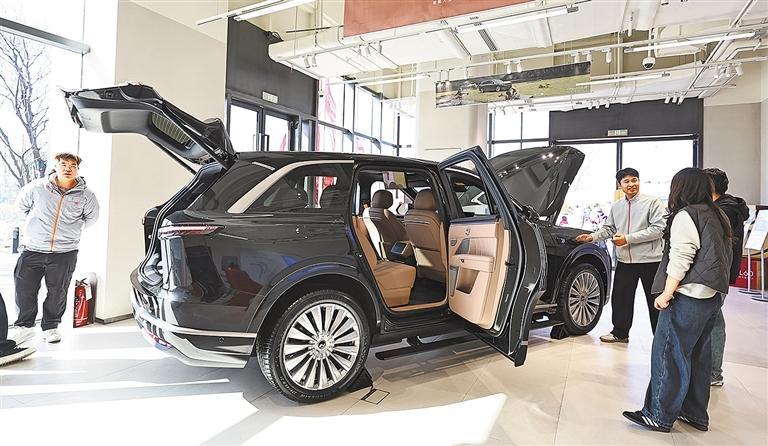 2月21日,消费者在浙江省嘉兴市南湖区一家汽车销售门店选购新能源汽车。金 鹏摄(中经视觉)
