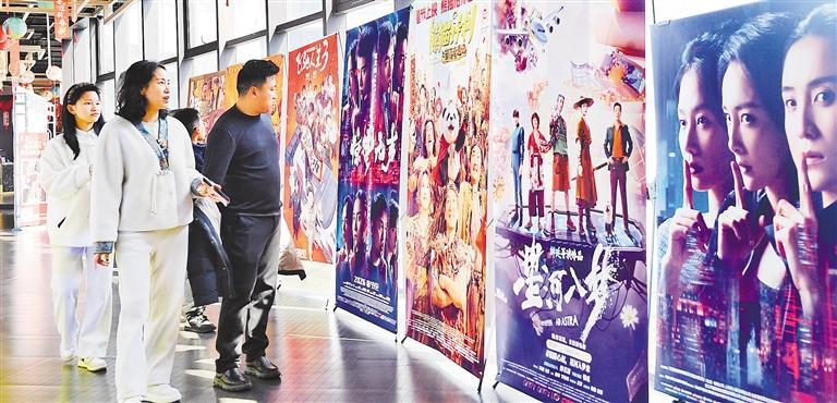 2月20日,贵州省仁怀市一家影城,观众在春节档电影海报前驻足。春节假期,各地影院人气高涨,电影票房持续走高。
