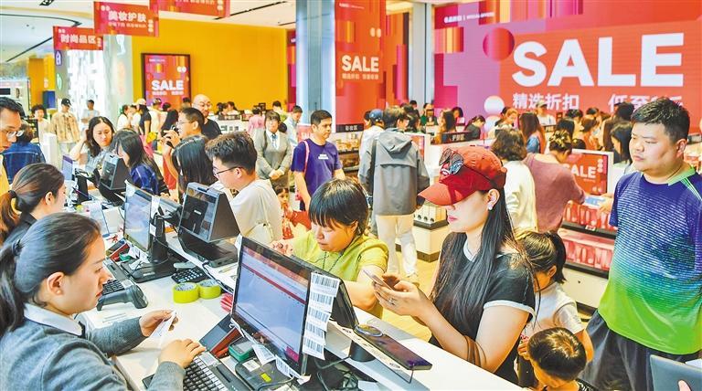 2月17日,消费者在cdf海口国际免税城选购免税商品。春节假期期间,海南各大免税店推出多项优惠活动,掀起假日消费热潮。