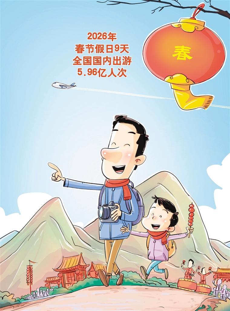 近日,文化和旅游部公布2026年春节假期文化和旅游市场情况。春节假日9天,全国国内出游5.96亿人次,较2025年春节假日8天增加0.95亿人次;国内出游总花费8034.83亿元,较2025年春节假日8天增加1264.81亿元,假日游客人数和花费均创历史新高。这份亮眼的成绩单,勾勒出文旅市场下一步的着力方向。相关部门应持续优化消费环境,完善交通、住宿等基础设施配套,并针对入境游进一步优化签证通关、支付服务等便利化措施;文旅企业需深耕“文化+”,将非遗、民俗与传统节日深度融合,打造更多沉浸式、高品质的体验项目。各地要立足资源禀赋,推动冰雪、避寒、乡村等特色旅游差异化发展,将假日流量转化为高质量发展的持久增量,让文旅市场的热力持续升腾。(时 锋)