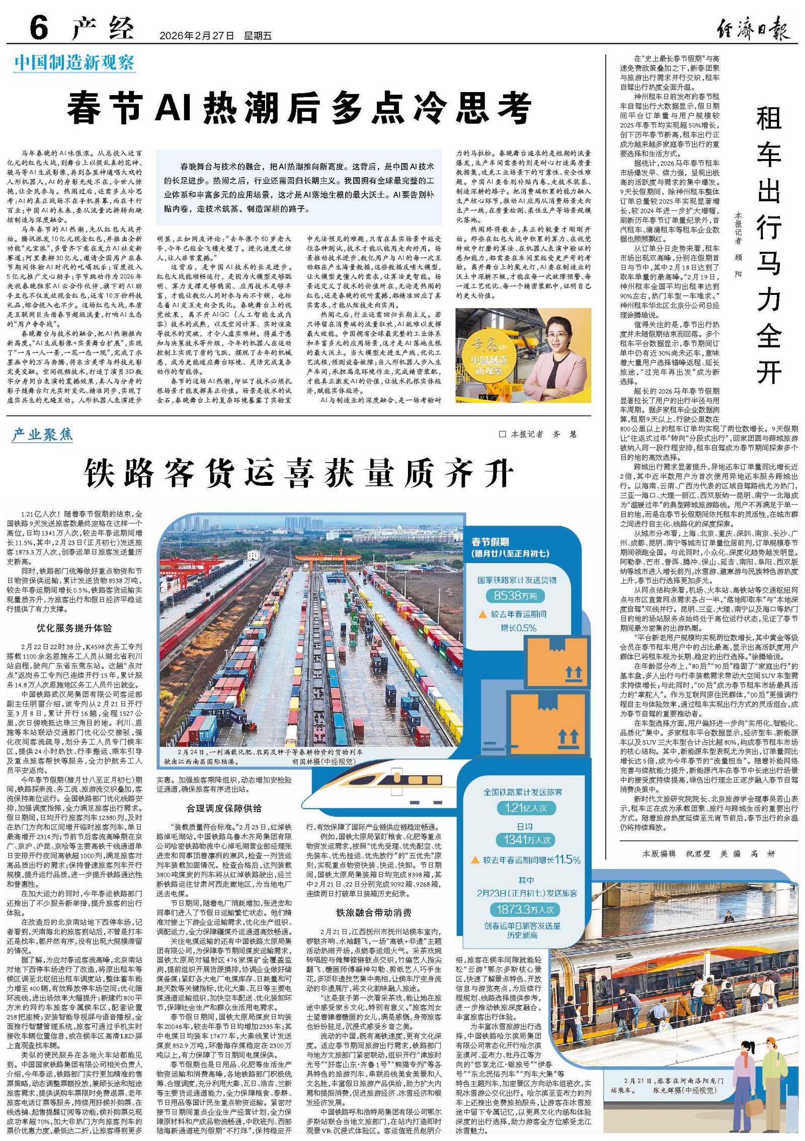 热闹之后,行业还需回归长期主义。若只停留在消费端的流量狂欢,AI就难以发挥最大效能。中国拥有全球最完整的工业体系和丰富多元的应用场景,这才是AI落地生根的最大沃土。当大模型走进生产线,优化工艺流程,预测设备故障;当人形机器人步入生产车间,承担高危环境作业,完成精密装配,才能真正激发AI的价值,让技术扎根实体经济,赋能实体经济。