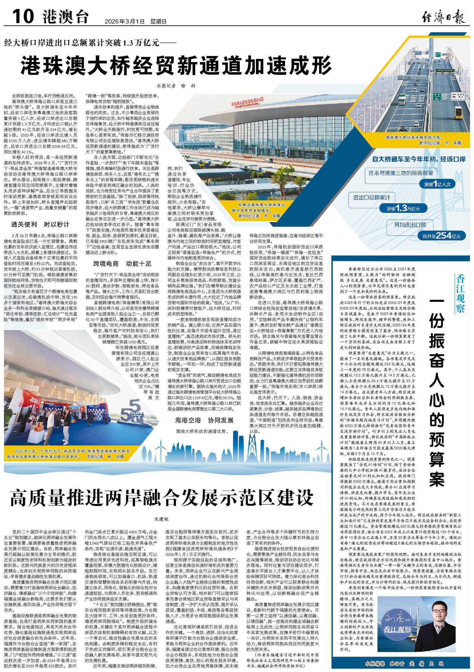 基础设施联通是两岸融合发展的物质基础,也是打造两岸共同家园的基本要求。闽台地缘相近,具有天然的合作优势,强化基础设施联通是实现两岸经济社会深度融合的先决条件。近年来,福建作为台胞台企登陆“第一家园”,在推进两岸基础设施联通方面取得积极进展,门户枢纽作用持续增强。“小三通”客运航次进一步加密,由2024年每周210航次增长至2025年每周252航次。泉州向金门供水已累计超过4300万吨,占金门民生用水八成以上。厦金通气工程大嶝LNG气源站已竣工验收并具备投产条件,实现“应通尽通、能通先通”。