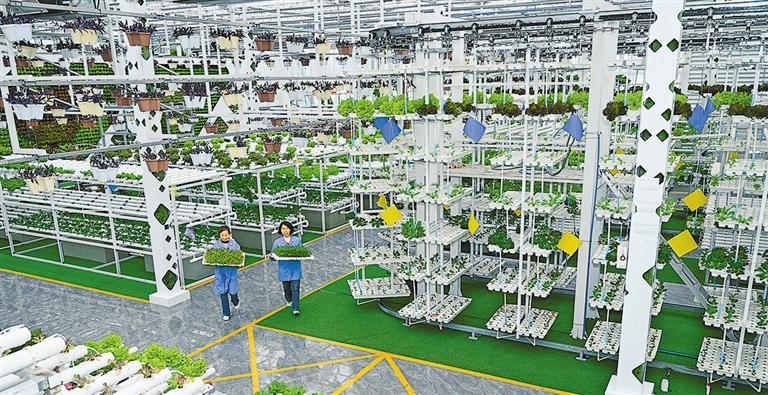 3月1日,在新疆昌吉国家农高区农业博览园智慧农业科技馆内,工作人员正在进行日常管护。得益于智能化管控,馆内生产的蔬菜品质优良,深受市场欢迎。陶维明摄(中经视觉)