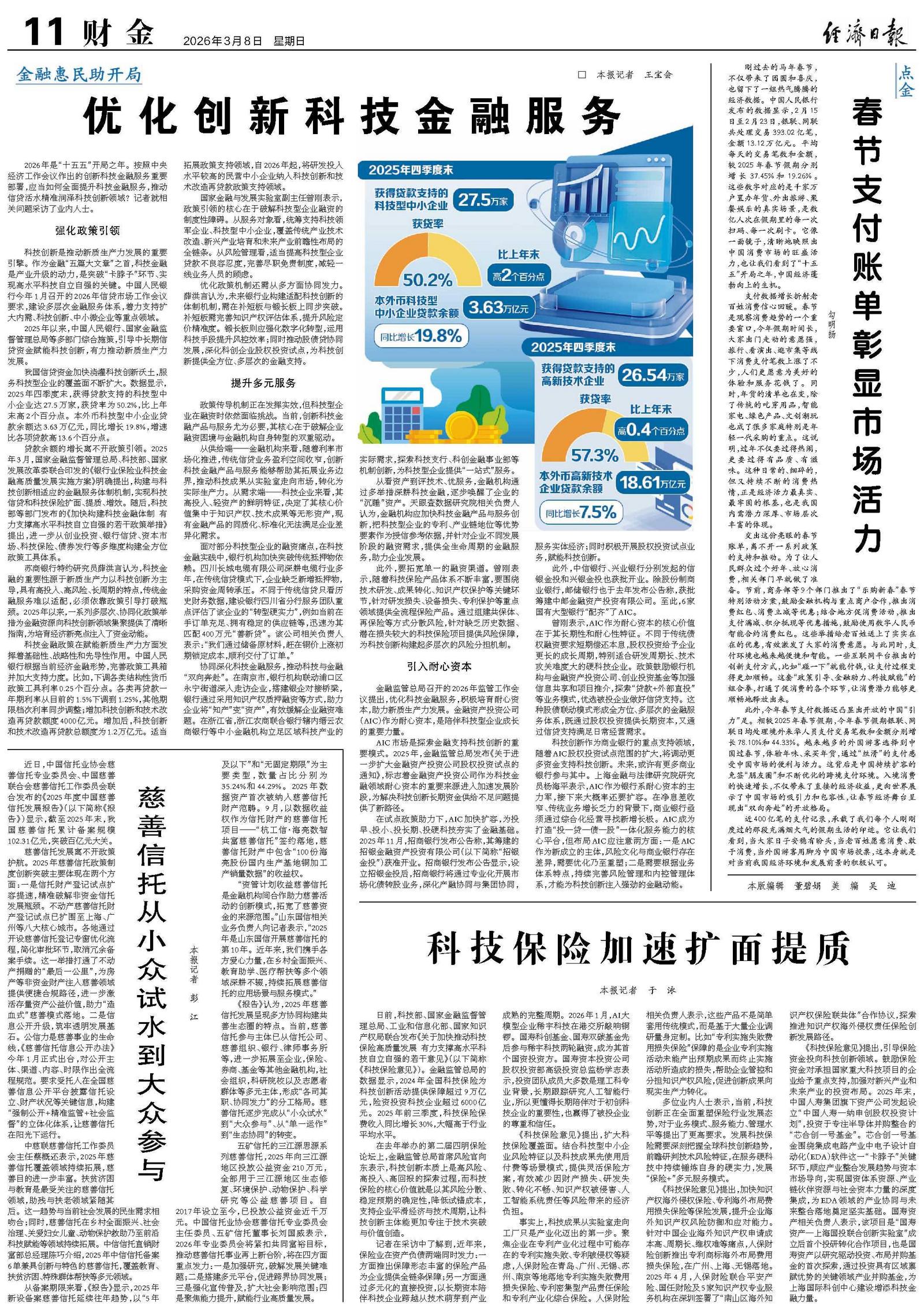 科技创新是推动新质生产力发展的重要引擎。作为金融“五篇大文章”之首,科技金融是产业升级的动力,是突破“卡脖子”环节、实现高水平科技自立自强的关键。中国人民银行今年1月召开的2026年信贷市场工作会议要求,建设多层次金融服务体系,着力支持扩大内需、科技创新、中小微企业等重点领域。