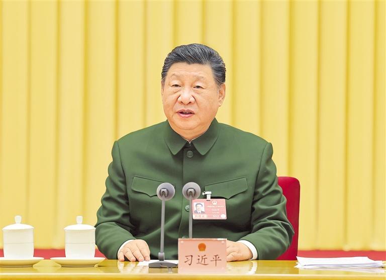 新华社北京3月7日电(记者梅常伟)中共中央总书记、国家主席、中央军委主席习近平7日下午在出席十四届全国人大四次会议解放军和武警部队代表团全体会议时强调,“十五五”时期要如期实现建军一百年奋斗目标、高质量推进国防和军队现代化,必须坚持好、运用好、发展好政治建军这个重要法宝,毫不动摇坚持和加强党对军队绝对领导,充分发挥政治建军特有优势,凝心聚力推动国防和军队现代化行稳致远。