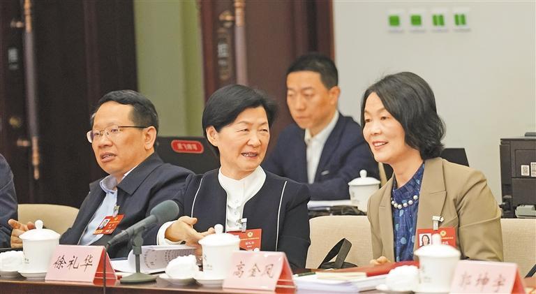 3月10日,全国政协十四届四次会议举行界别协商会议和小组会议。图为委员在会前交流。 本报记者 赵 晶摄