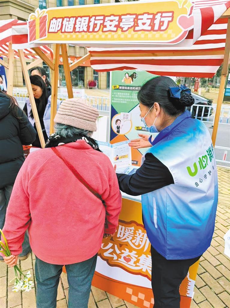 3月1日起,邮储银行上海分行“U心消保”教育宣传队迅速行动,积极推动金融知识“走出去”,深入社区、商户、地铁站、商圈、医院、校园等地,针对老年人、青少年、新市民等重点群体,通过内部厅堂宣传与外部拓展宣传相结合的方式,开展数百场形式多样的实地宣传活动。