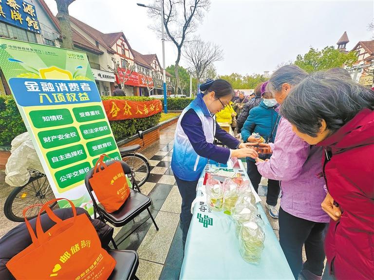 邮储银行上海分行“U心消保”教育宣传队在外设摊,普及金融消费者8项权益