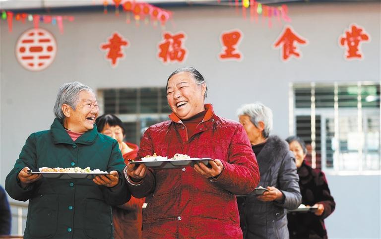 1月15日,老人在湖北省荆门市东宝区石桥驿镇上泉村“幸福里食堂”用餐。全国已建近8万个老年助餐点,每天有300多万老人就餐。赵 平摄(中经视觉)