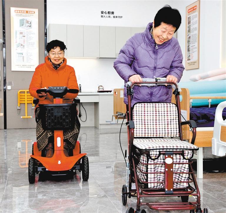 2月27日,老人在江苏省徐州市鼓楼区丰财街道适老化改造体验中心内体验适老助行产品。2025年我国银发经济规模接近10万亿元,适老化产品种类从不足千种跃升至万余种。